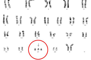 Причины. Каждая наша клетка содержит определённое количество хромосом, несущих в себе закодированную генетическую информацию. У здорового человека таких единиц, отвечающих за наследуемые признаки, всего 46, причём половину из них он получает от матери, половину – от отца. У больного с синдромом Дауна в 21-ой паре хромосом имеется третья дополнительная структура, в результате чего общее количество хромосом становится равным 47. Дополнительная копия генетического материала определяет наличие аномалии, однако конкретные её проявления будут зависеть от целого ряда признаков: степени копирования, генетической истории и даже от чистой случайности (у одних будут наблюдаться серьезные нарушения здоровья, у других – незначительные). Отметим, что в некоторых случаях могут отмечаться и другие изменения в структуре носителей генетической информации. Лишнюю хромосому принято считать результатом неправильного созревания половых клеток (одной из пар хромосом не удаётся разойтись при делении, в результате чего при слиянии с «информацией» второго родителя получается набор не из 2, а из 3 хромосом).