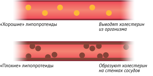 Холестерин — органическое соединение, служащее строительным материалом для клеточных мембран. Нерастворимый в воде, он «путешествует» по кровеносной системе в виде комплексных соединений с белками-транспортерами. Эти комплексные соединения называются липопротеидами. Различают липопротеиды высокой плотности («хорошие») и липопротеиды низкой и очень низкой плотности («плохие»). Слабая связь между белком и жировыми клетками в «плохих» липопротеидах часто приводит к распаду соединений и отложению холестерина на стенках сосудов в виде атеросклеротических бляшек. «Хорошие» липопротеиды стремятся «захватить» осевший на стенках сосудов холестерин и способствуют его естественному выведению из организма.