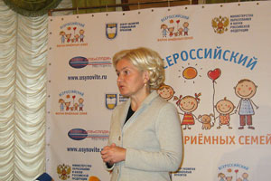 Ольга Голодец зачитала приветствие главы Правительства РФ Дмитрия Медведева, в котором говорится, что решение проблем сиротства, укрепление института семьи и защита детей — это безусловный приоритет для государства. «Сегодня Правительство целенаправленно занимается развитием института приемных семей. Стимулирует усыновление и опеку, упрощая соответствующие процедуры для наших граждан. Увеличивает материальную поддержку опекунам и усыновителям. Эта работа будет продолжена. Все мы — государство и общество — должны стремиться к тому, чтобы как можно больше детей сирот нашли свои семьи. Рассчитываю, что ваш форум привлечет внимание к этой проблеме и предложит новые пути ее решения», — говорится в Приветствии Премьер-министра России.
