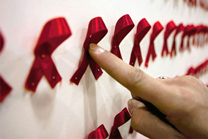 Помимо девиза, у дня борьбы со СПИДом есть ещё и эмблема: красная шёлковая ленточка, сложенная в виде особой петельки. Символ придумал в апреле 1991 г. американский художник Франк Мур, умерший в 2002 году от этой же злосчастной болезни (в возрасте 48 лет). Красная ленточка очень хорошо знакома нашим соотечественникам, так как её используют в качестве логотипа и ВОЗ, и агентства ООН, и различные благотворительные фонды (в том числе, борющиеся с раком груди).