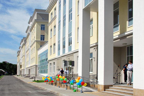 Она рассказала, что строительство данного комплекса началось в августе 2011 г. И буквально в течение 2 лет появился огромный комплекс — 40 000 кв. м. Состоит он из 2 частей: новое здание консультативно-диагностического центра и здание хирургической клиники. Чтобы сделать здания интересными и понятными для детей, руководство центра предложило следующую концепцию для консультативно-диагностического центра: 4 этажа — 4 времени года. Самый последний этаж — это зима. Сюда вынесены все хирургические специальности. На 3-м этаже — осень. Здесь инструментально-лабораторная диагностическая служба. Второй этаж, который предполагает самый большой поток пациентов и где находятся смотровые кабинеты специалистов, — лето. А на 1-м этаже — вечная весна.