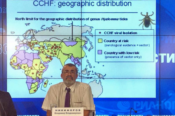 На все эти вопросы подробно ответил заведующий кафедрой инфекционных болезней Института повышения квалификации ФМБА России профессор Владимир Никифоров на прошедшей пресс-конференции, посвященной страшной лихорадке. «Геморрагическая лихорадка — это большая группа вирусных заболеваний, которые объединяет 3 параметра: они все вызываются вирусом, у них присутствует лихорадка в течение болезни и все они включают геморрагический синдром, то есть появляются кровотечения», — пояснил специалист. По его словам, лихорадка Эбола к самым опасным вирусным заболеваниям, или, как их называют, карантинным, не относится. Эта болезнь не требует специального переносчика. На территории России также есть опасная геморрагическая лихорадка — это Крым-Конго, которая передается клещами.